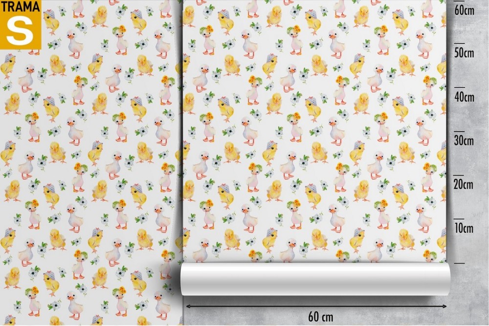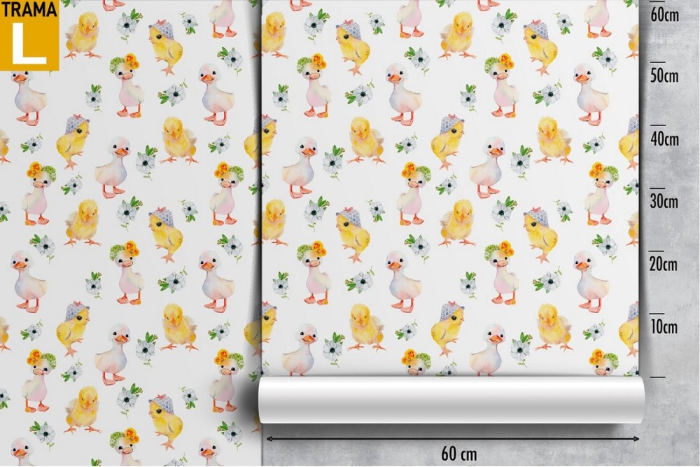 Carta da Parati pulcini e anatroccoli decorazione bambini.