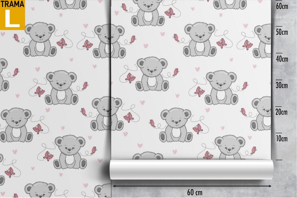 Carta da Parati orsetti e farfalle animali bambini pattern.