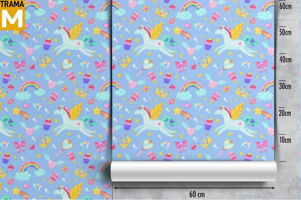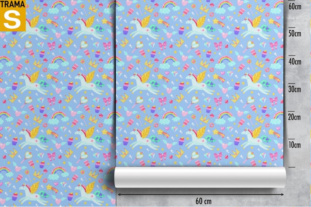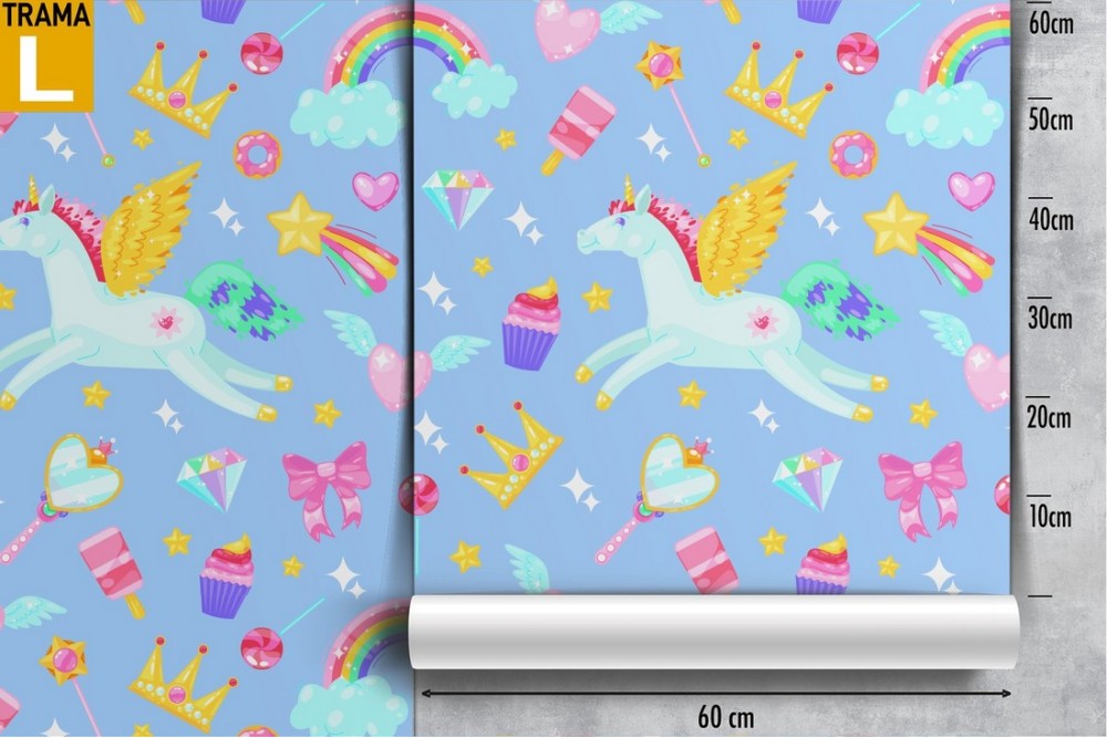 Carta da Parati unicorni e arcobaleni bambini pattern.