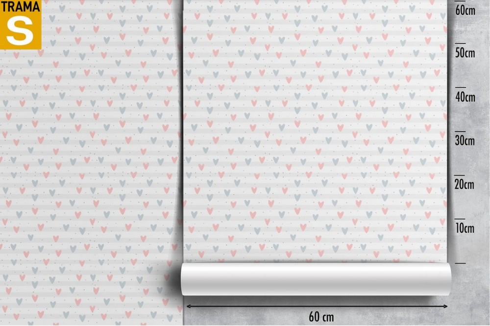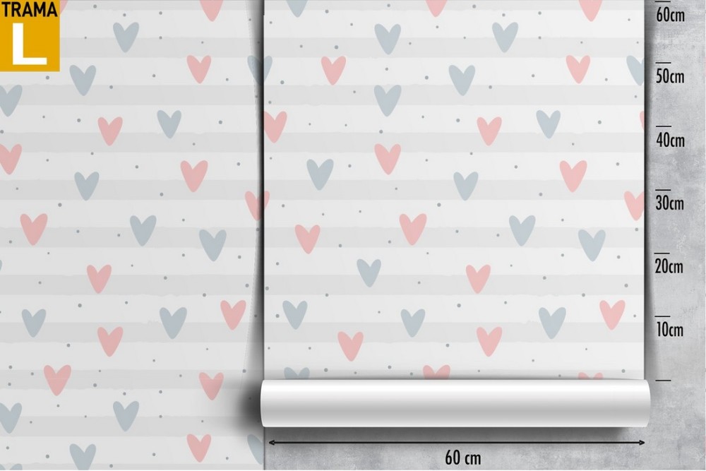Carta da Parati cuori stilizzati e righe pattern bambini.