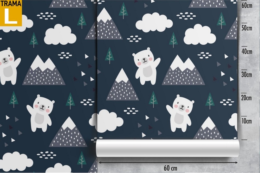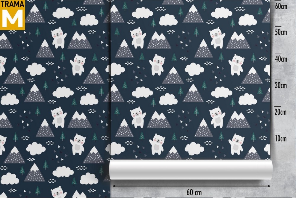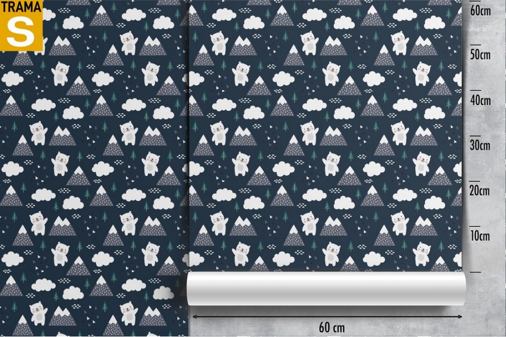 Carta da Parati orsetti e montagne stilizzate bambini.