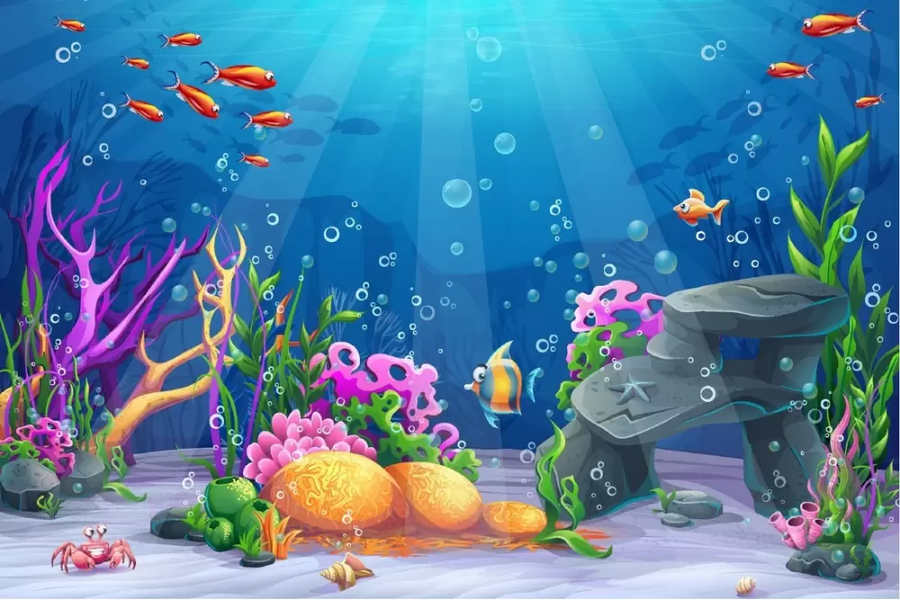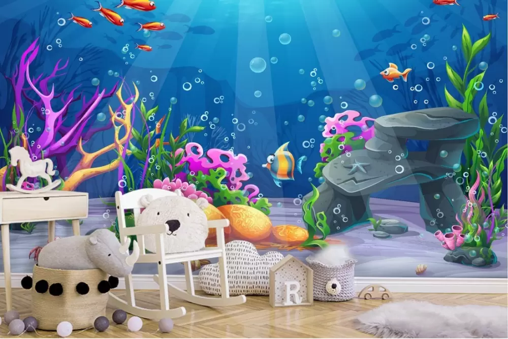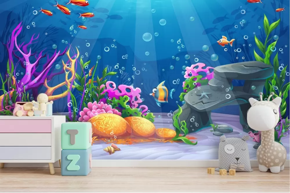 Carta da Parati paesaggio subacqueo pesci e coralli