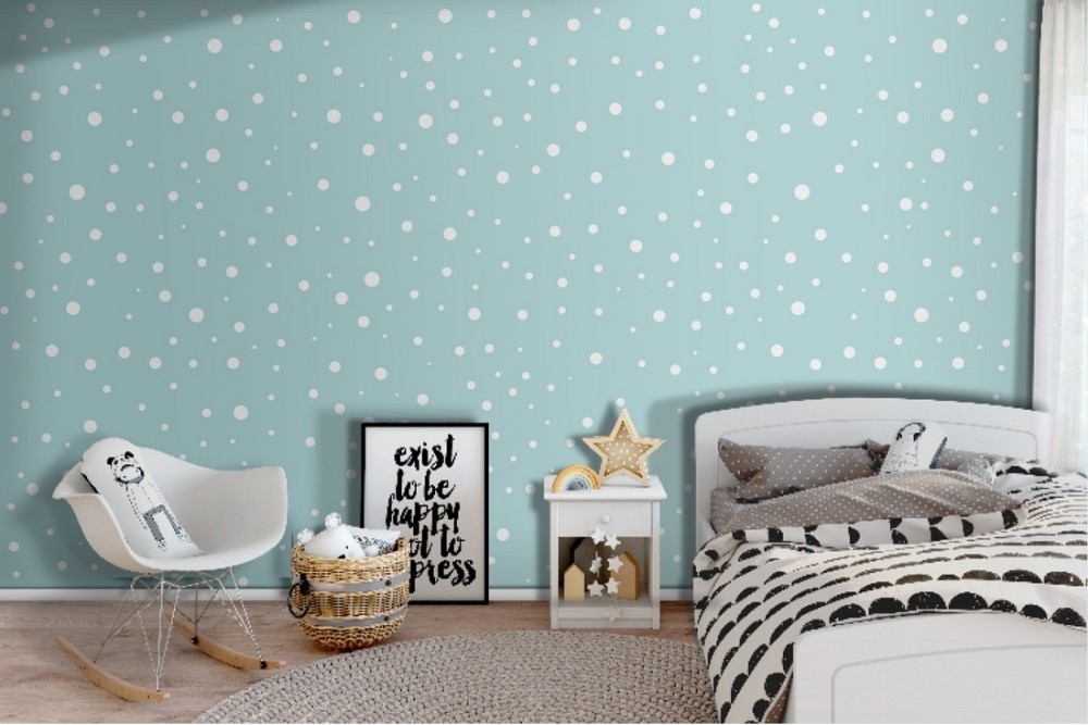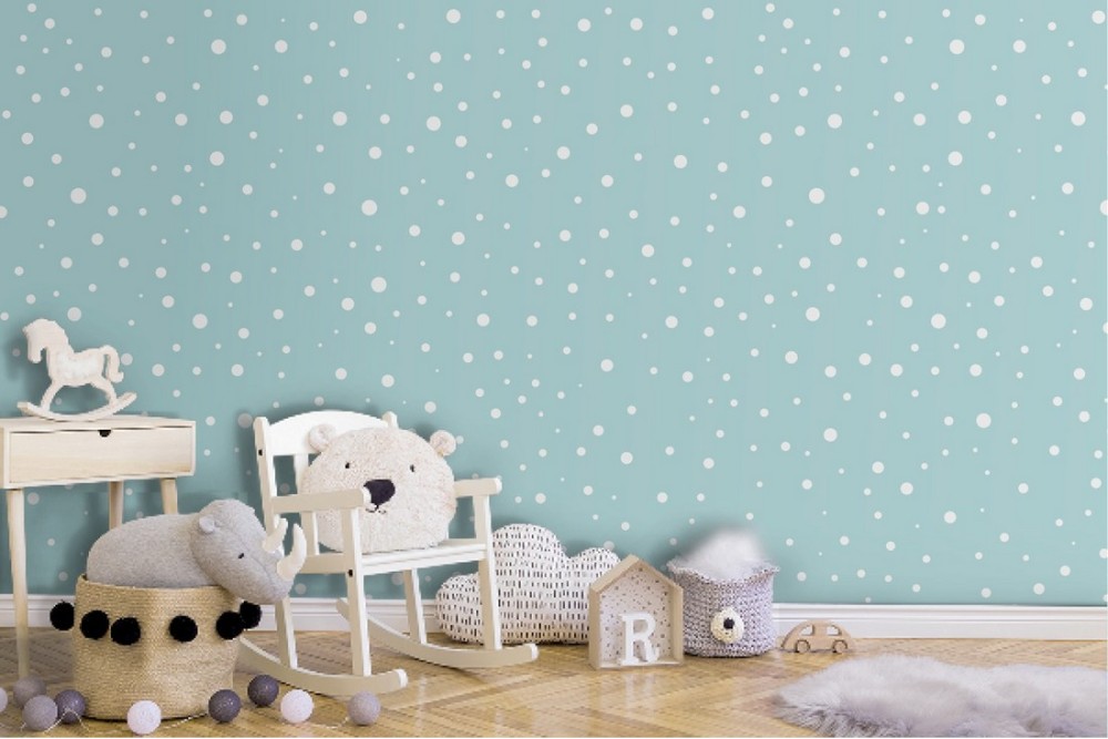 Carta da Parati bambini decorazione a pois azzurro e bianco
