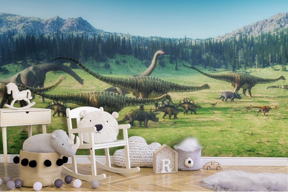 Carta da Parati illustrazione dinosauri animali bambini-10