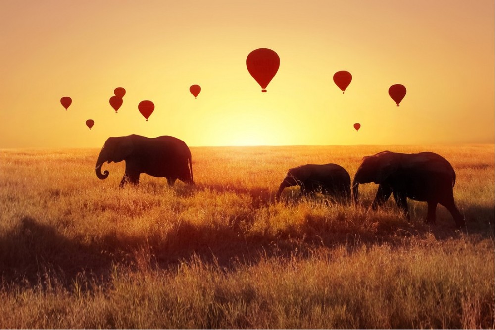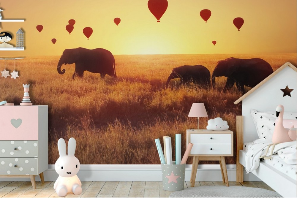 Carta da Parati animali elefanti e mongolfiere paesaggio bambini-49