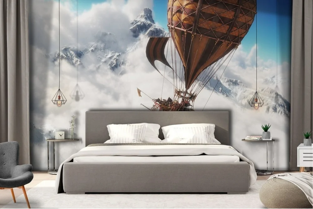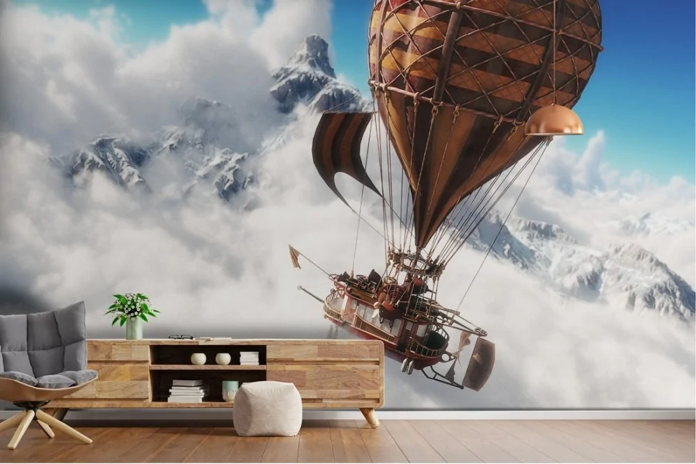 Carta da Parati mongolfiera fantasy montagna paesaggio