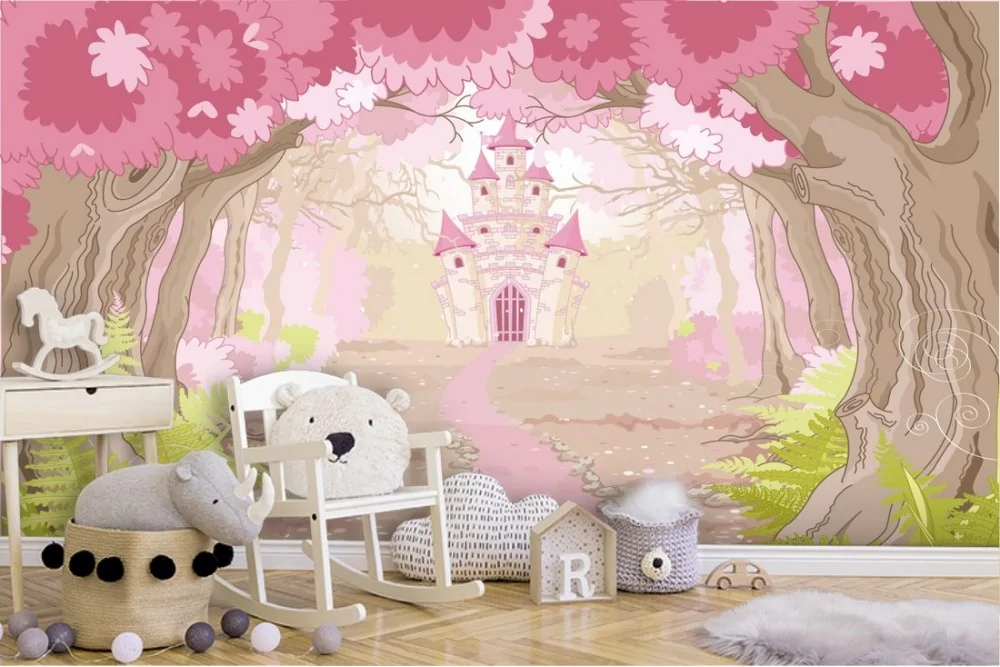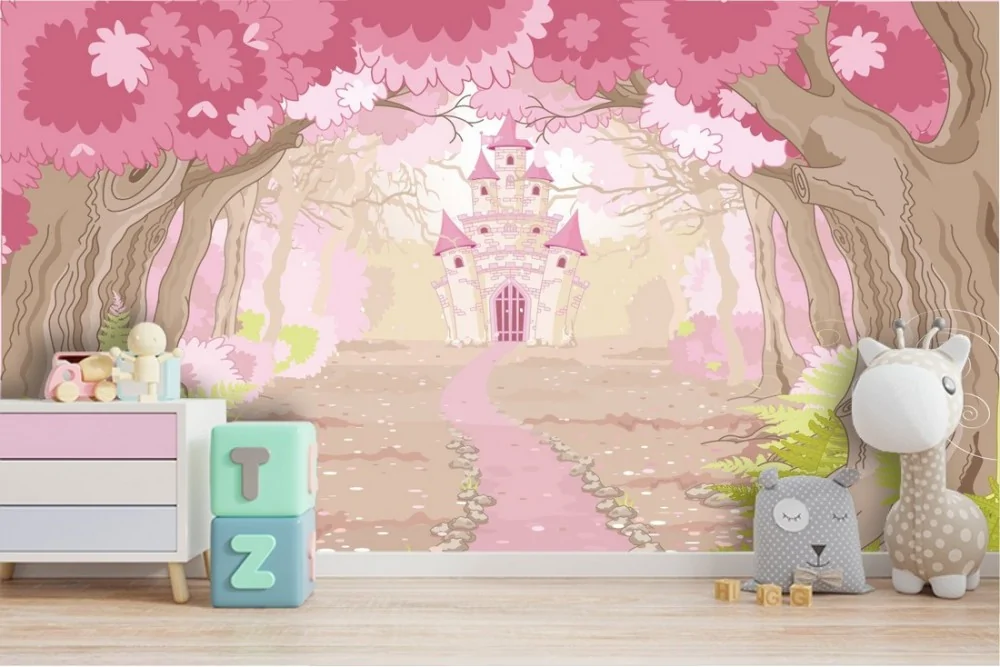 Carta da Parati castello fiabe nel bosco paesaggio bambini