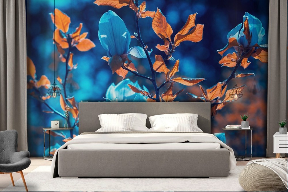 Carta da Parati natura foglie blu albero