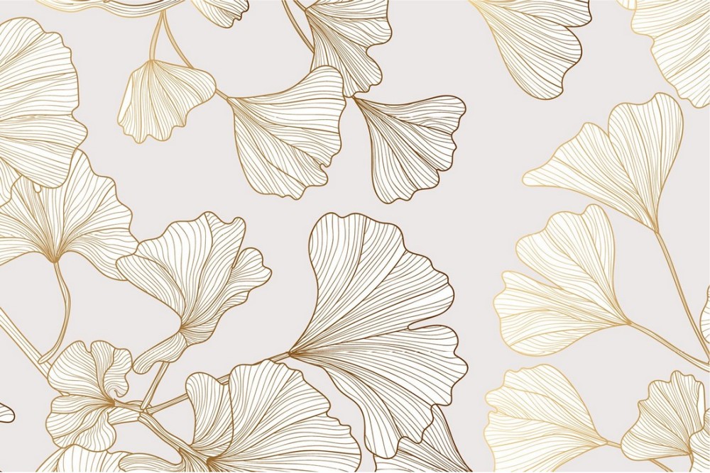 Carta da Parati fiori stilizzati marmo e oro superficie