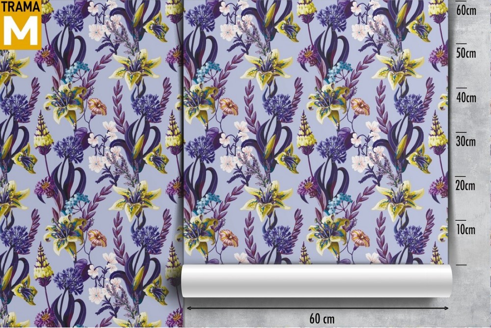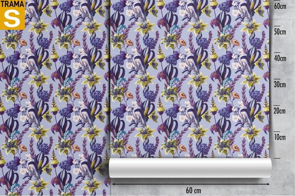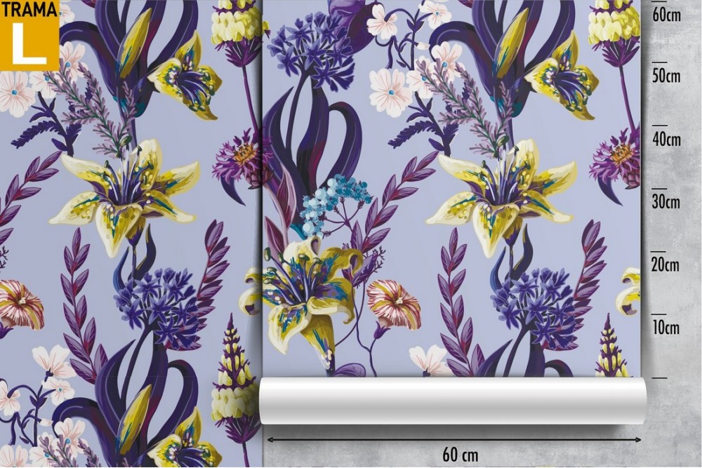 Carta da Parati pattern fiori gialli e viola.