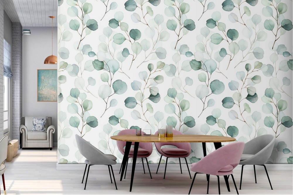 Carta da Parati foglie natura stilizzata pattern.