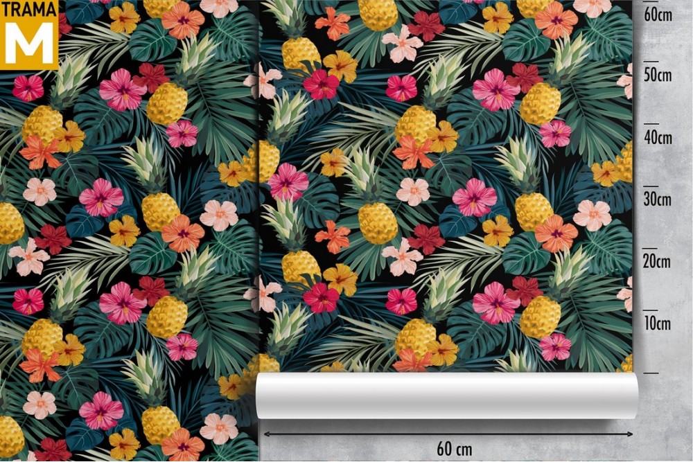 Carta da Parati decorazione fiori e foglie vintage.