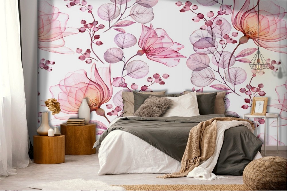 Carta da Parati decorazione natura fiori rosa.