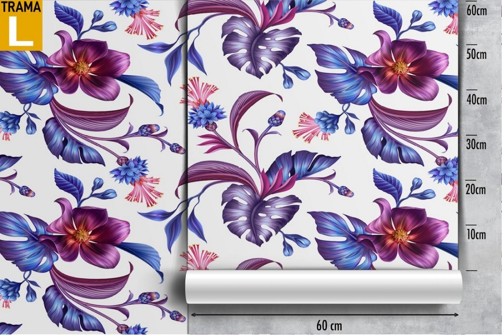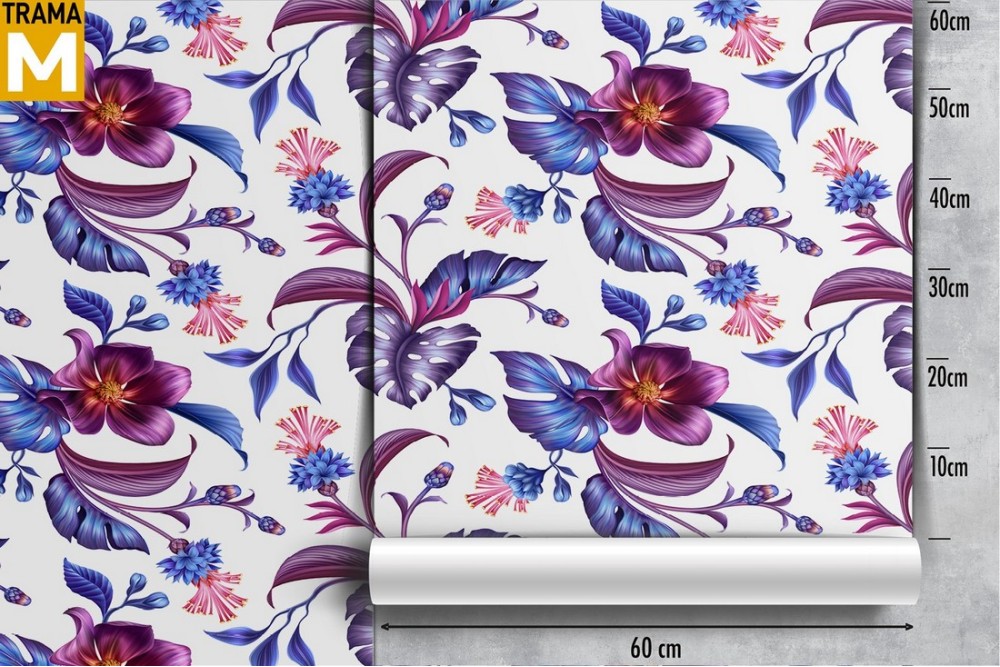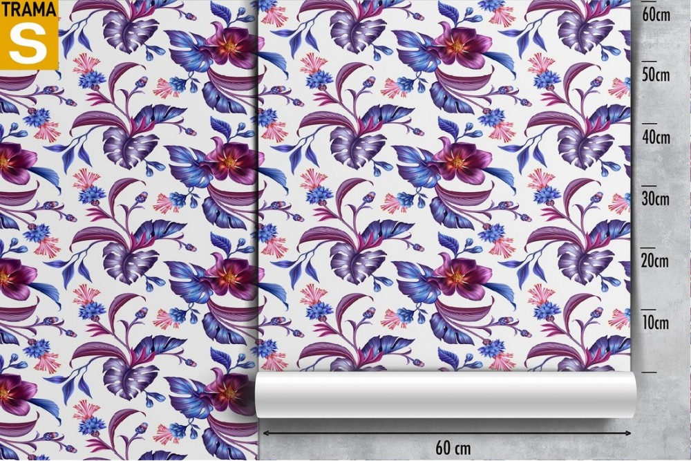 Carta da Parati fiori viola e foglie natura pattern.