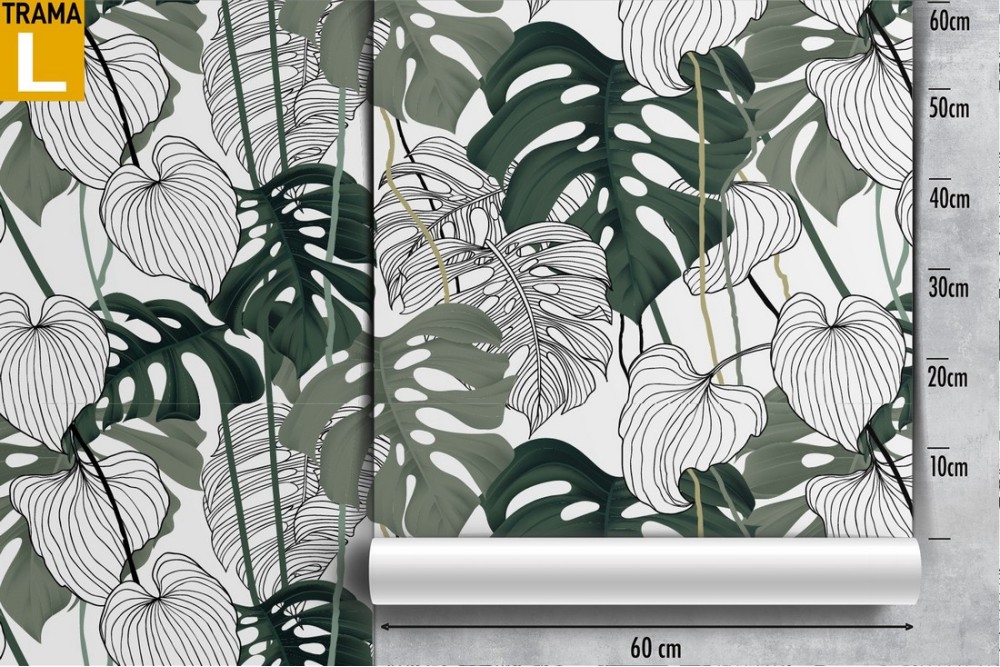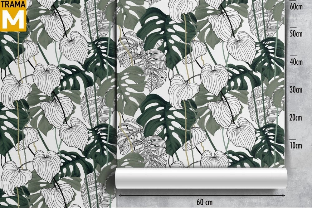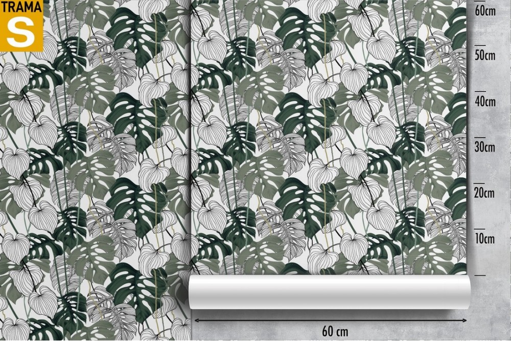 Carta da Parati foglie tropicali stilizzate natura pattern.