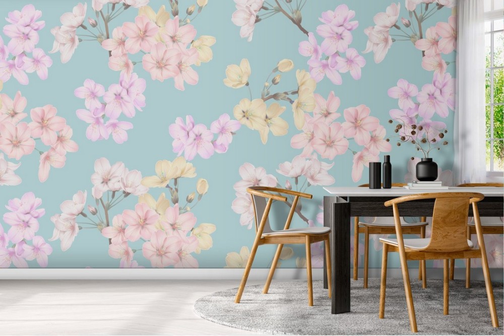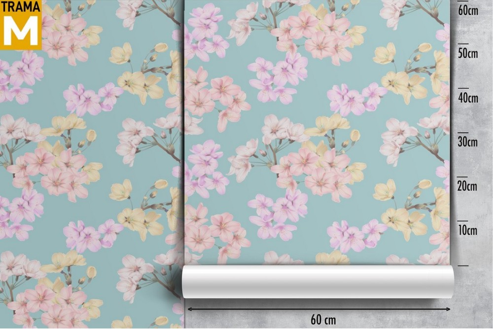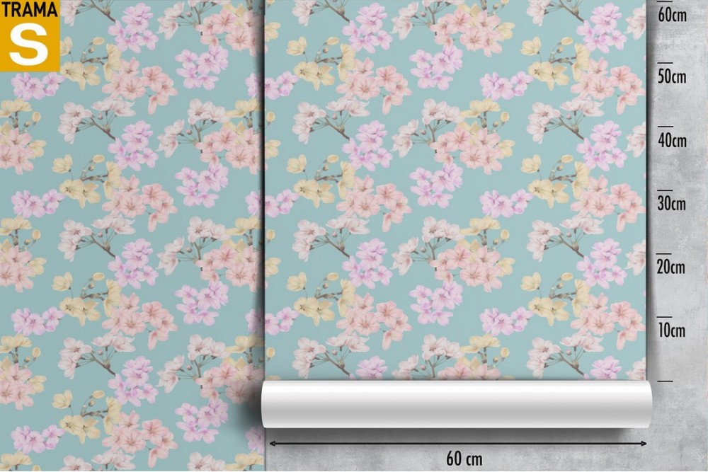 Carta da Parati fiori rosa e gialli natura pattern anni '70.