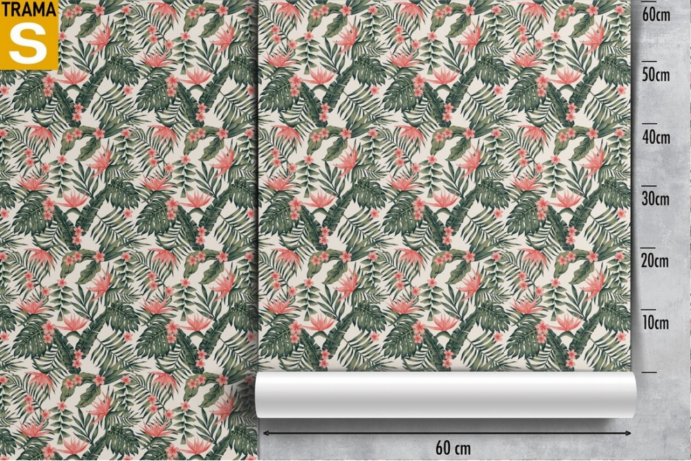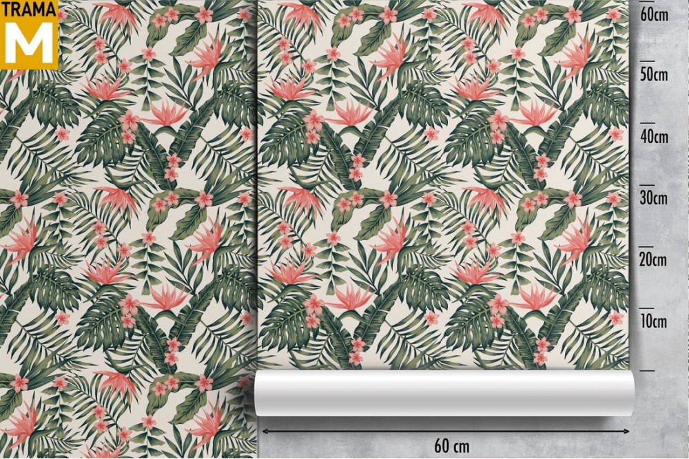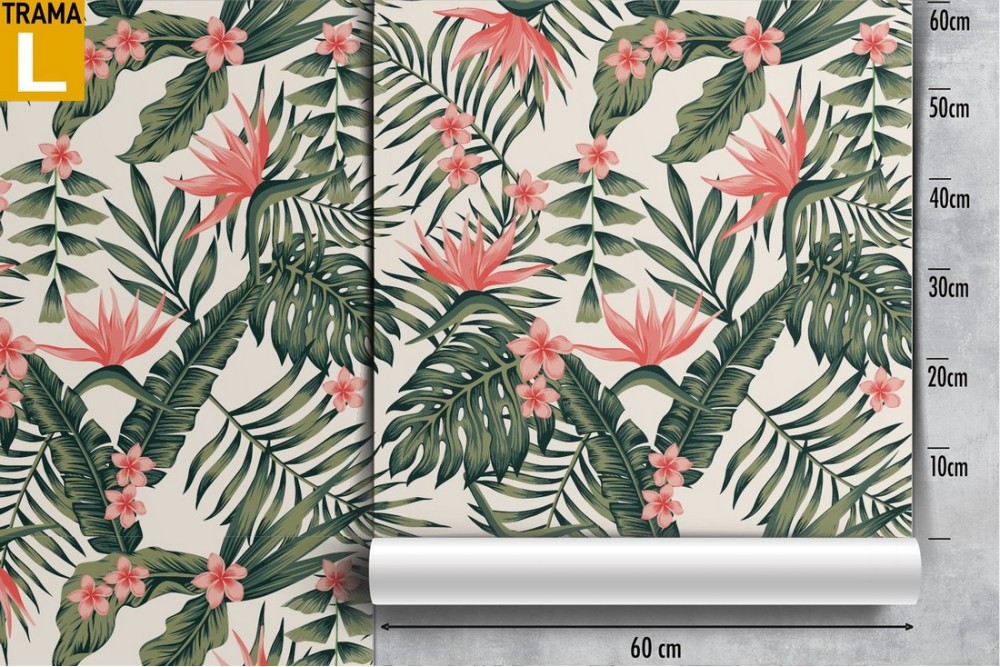Carta da Parati foglie e fiori tropicali natura astratta.