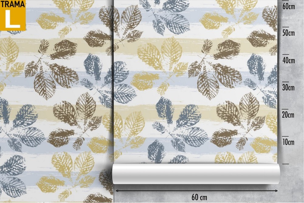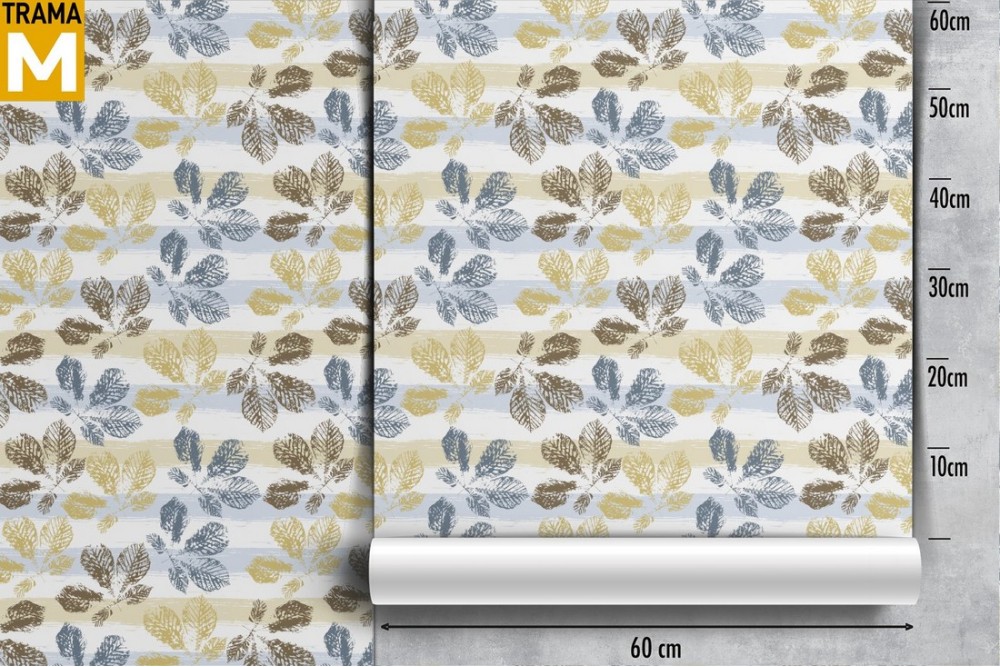 Carta da Parati foglie stilizzate e righe pattern anni '70.