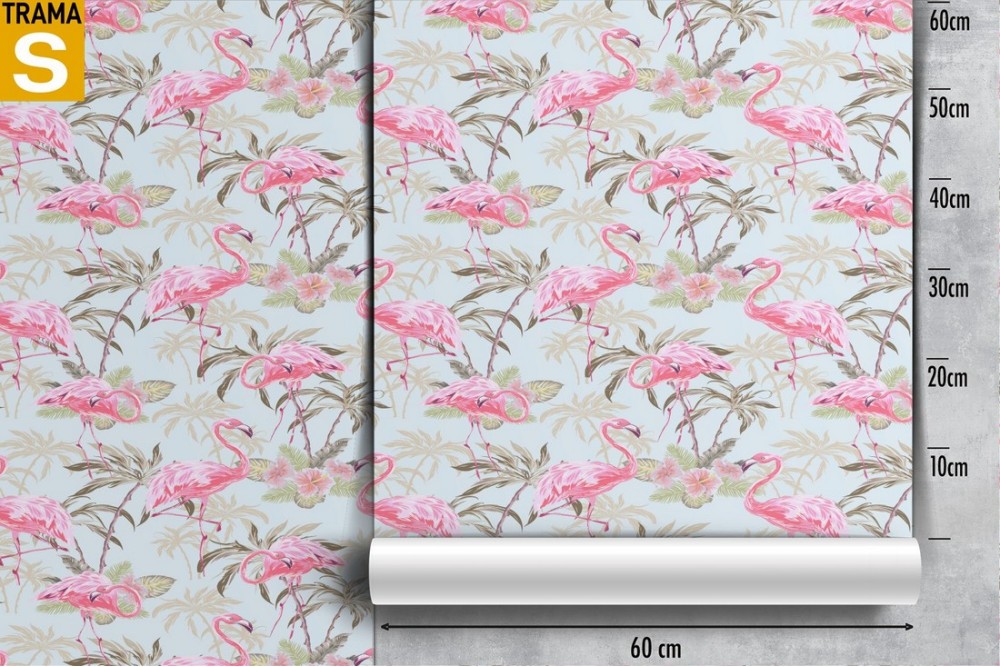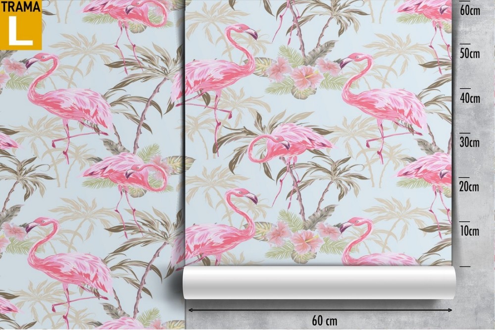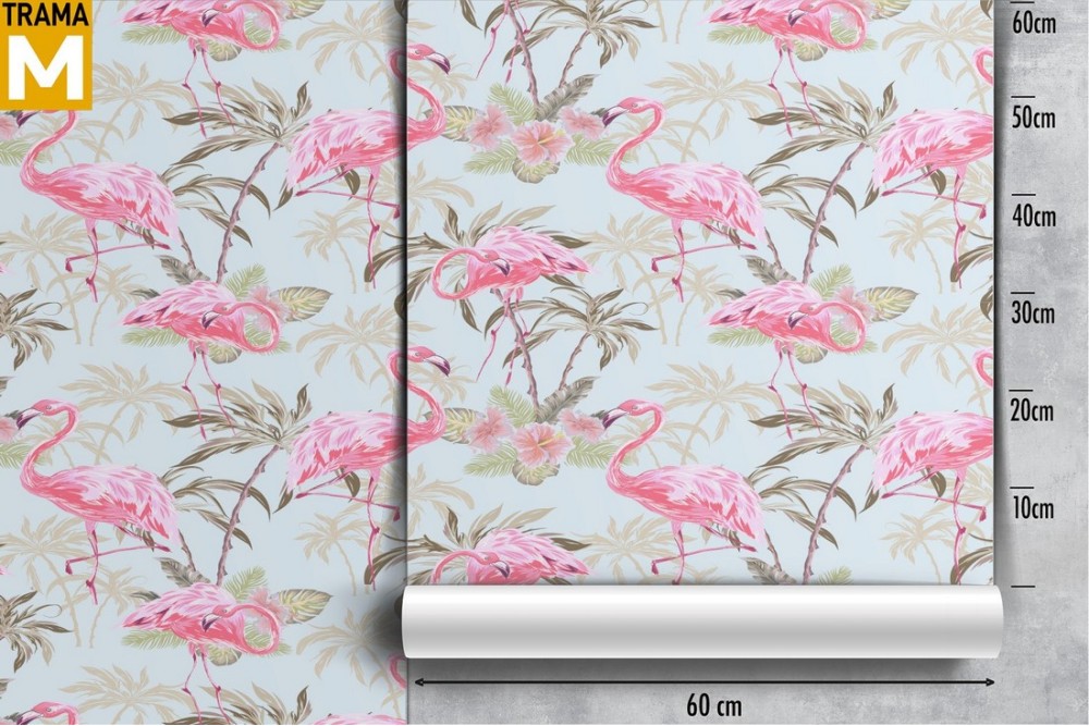 Carta da Parati fenicotteri e palme tropicali natura pattern.