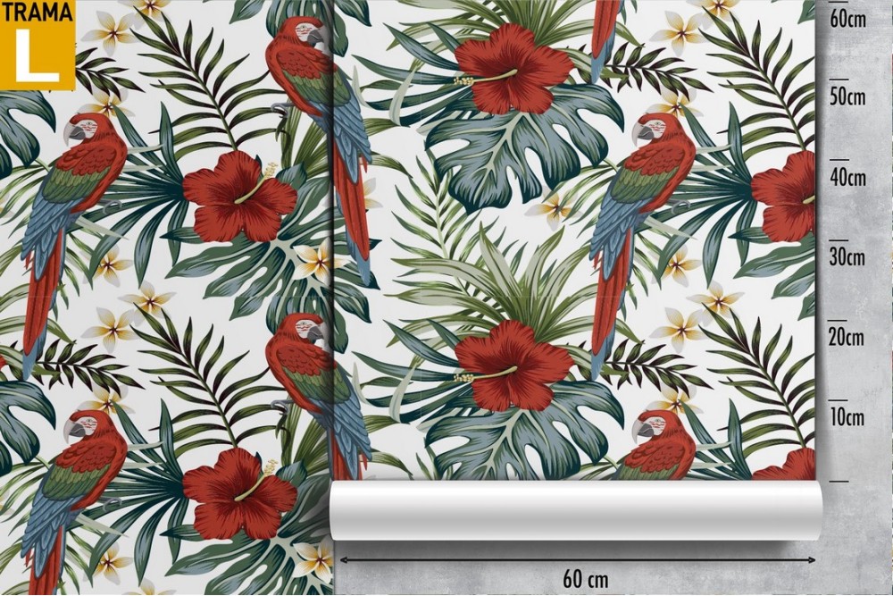 Carta da Parati fiori tropicali e pappagalli natura pattern.