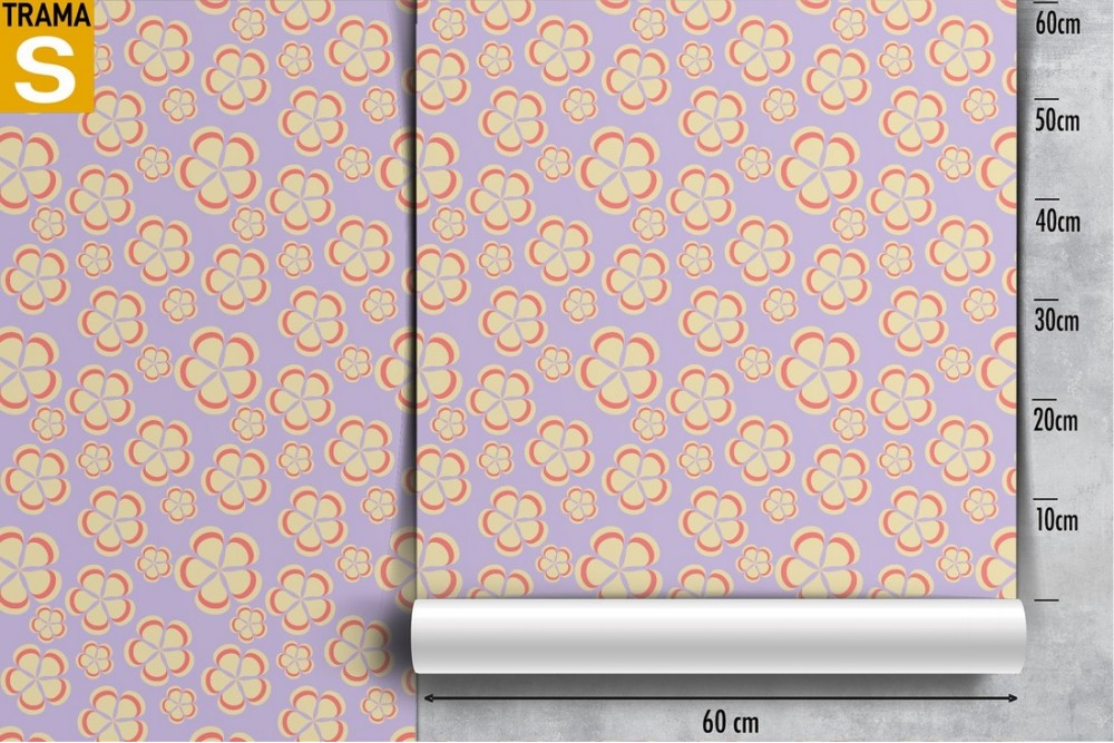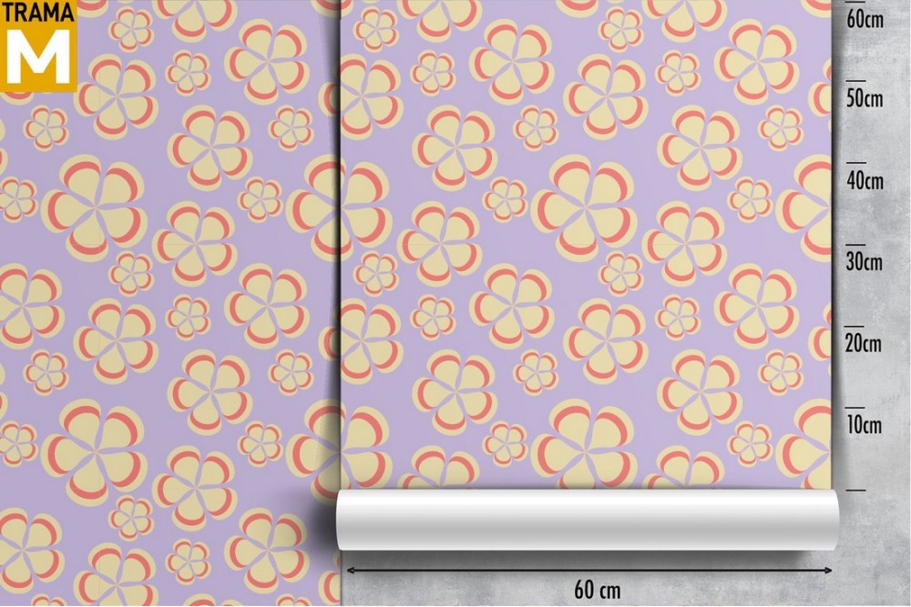 Carta da Parati fiori stilizzati petali gialli e rosa.