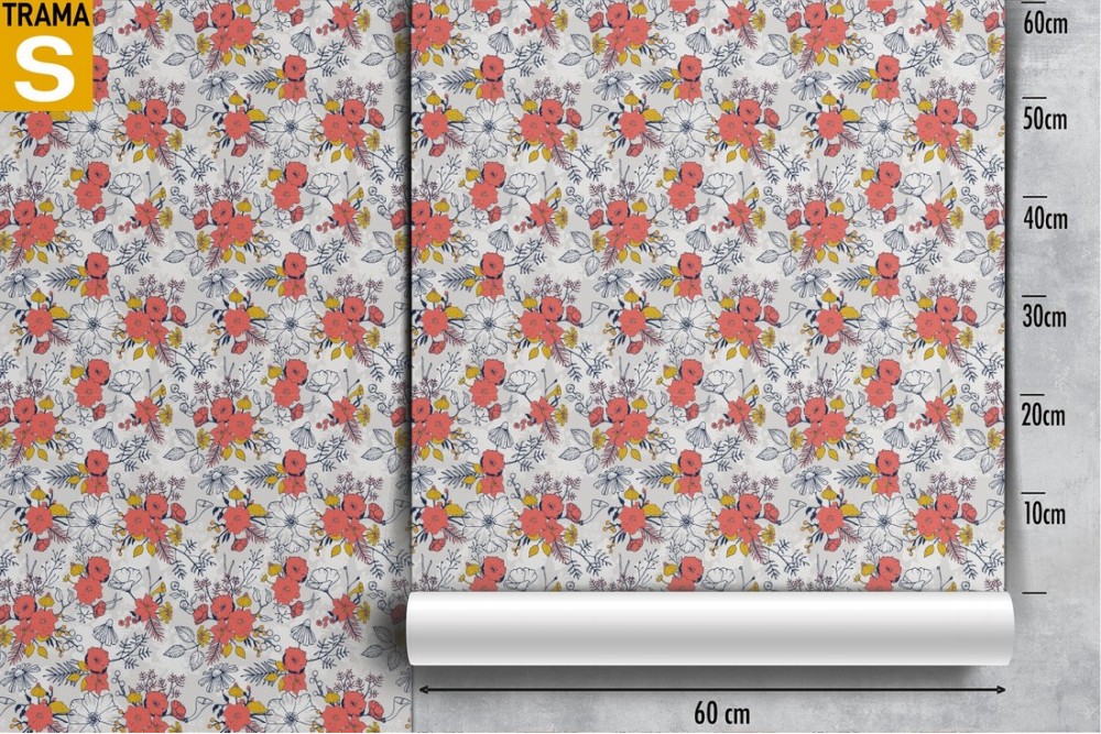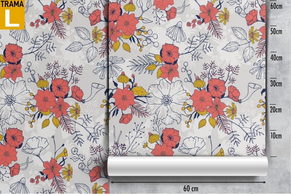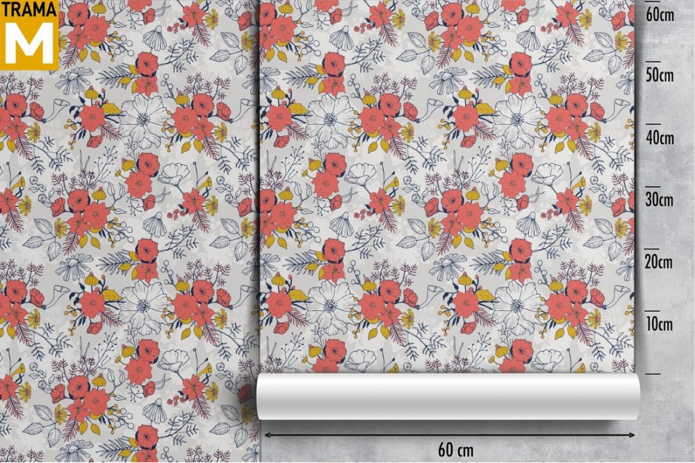 Carta da Parati fiori vintage stilizzati.
