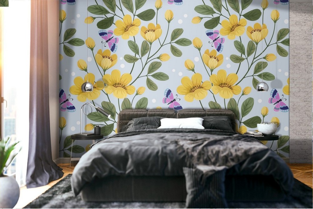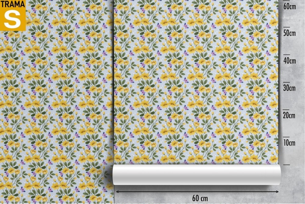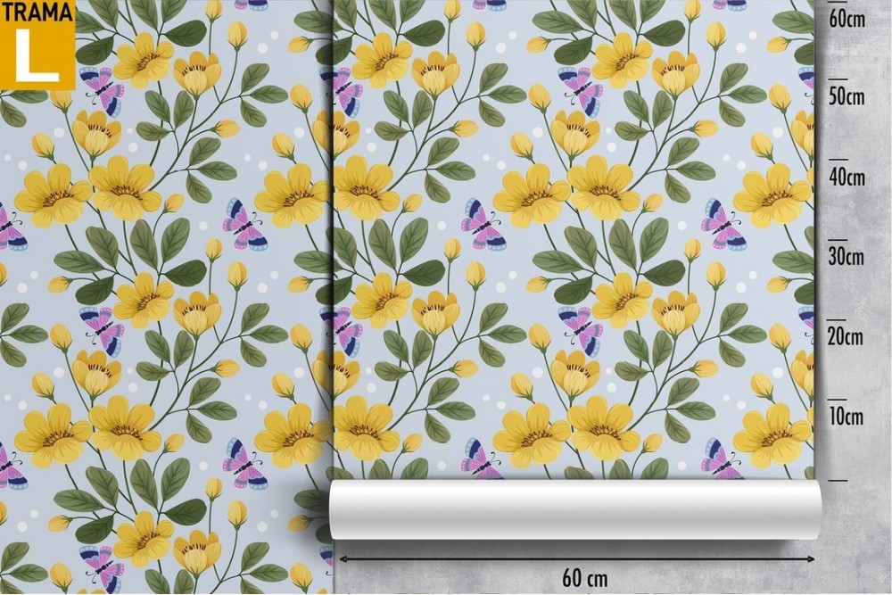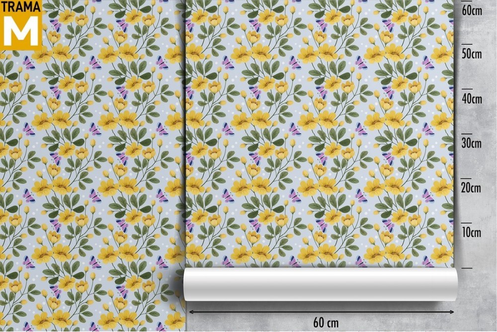 Carta da Parati fiori gialli raffinati pattern moderno.