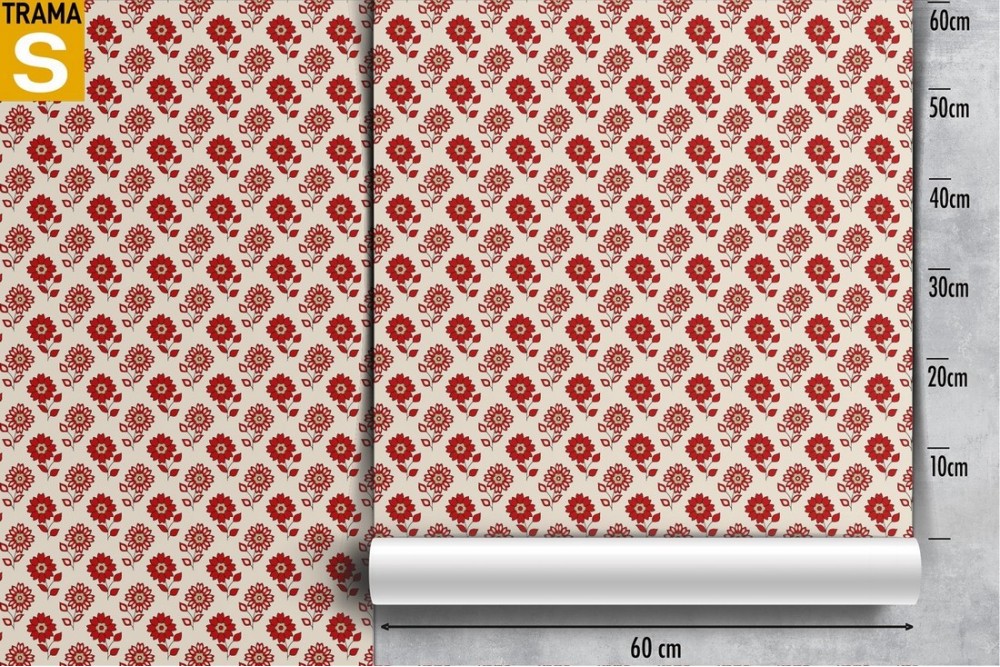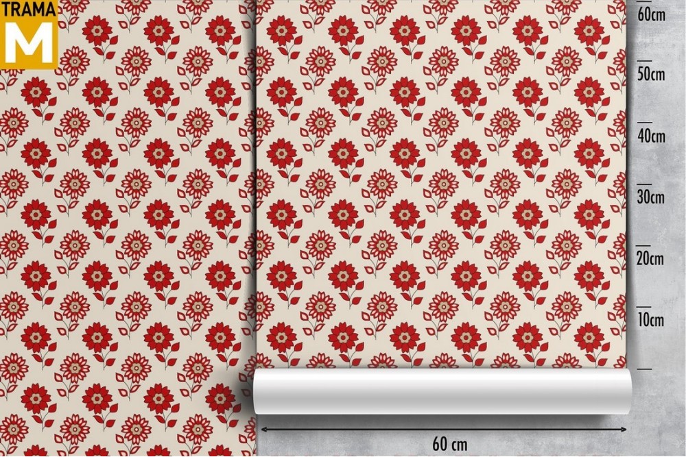 Carta da Parati fiori rossi stilizzati pattern vintage.