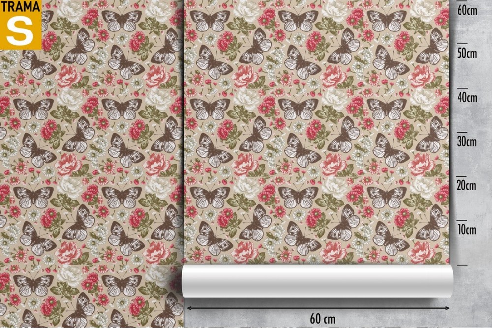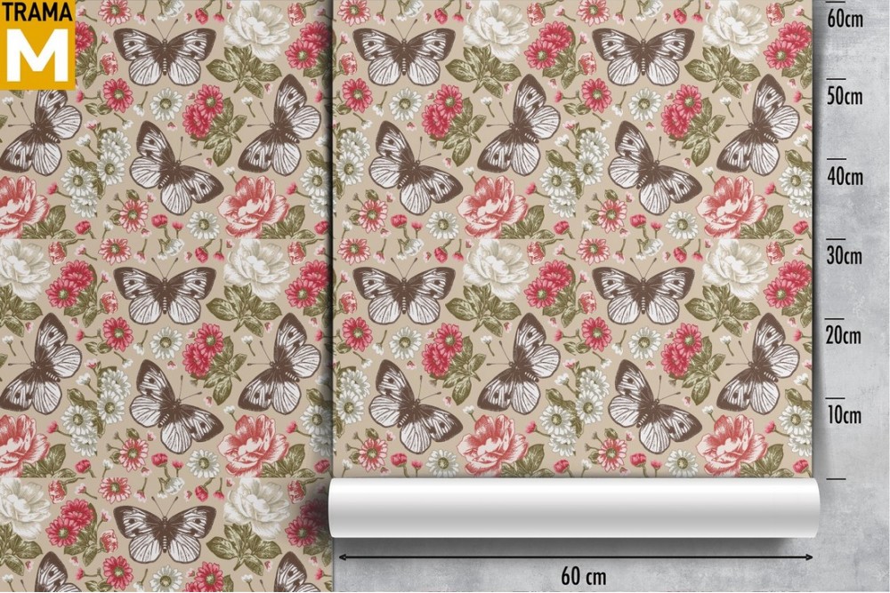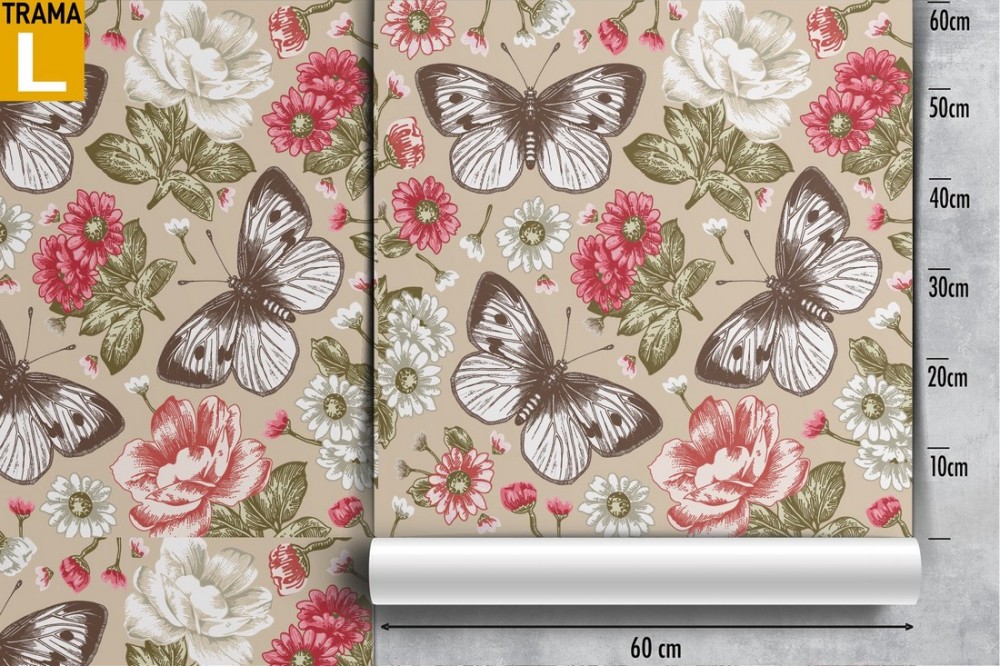 Carta da Parati fiori e farfalle vintage natura.