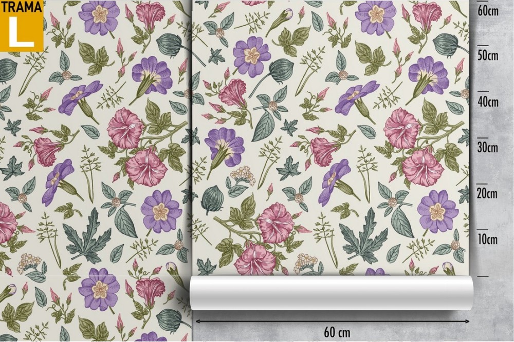 Carta da Parati fiori vintage pattern natura rosa e viola.