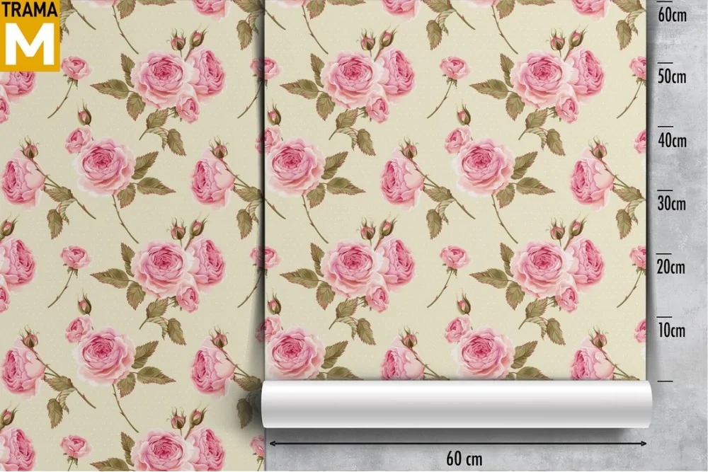 Carta da Parati fiori rosa grandi vintage natura.