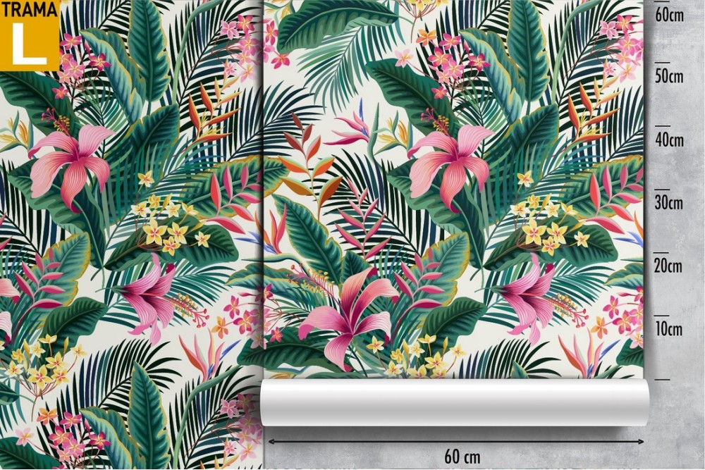 Carta da Parati fiori e foglie tropicali natura vintage.