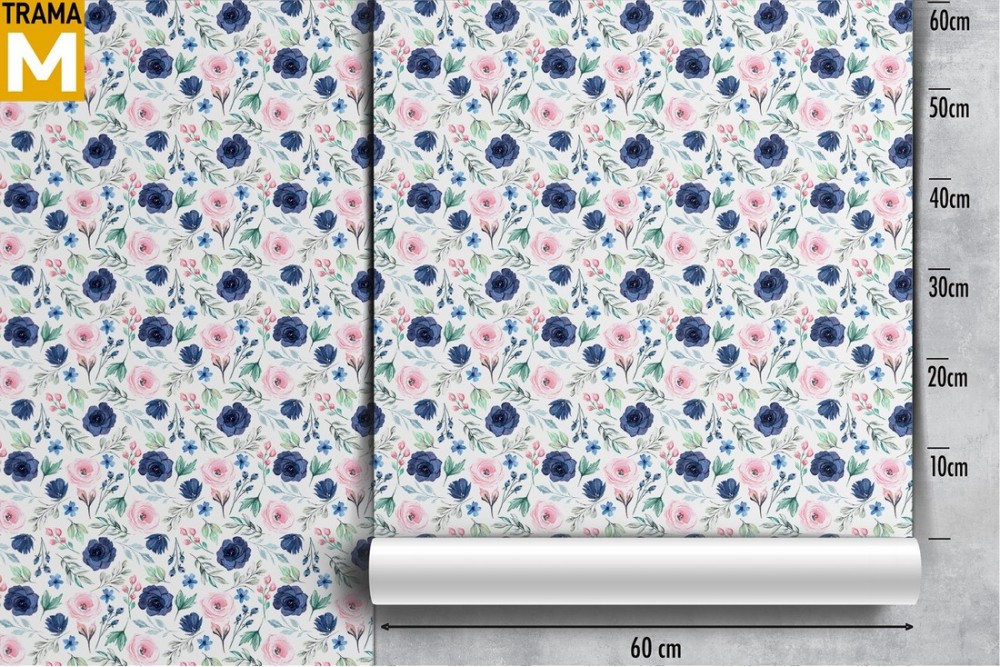 Carta da Parati fiori rosa e blu natura vintage.