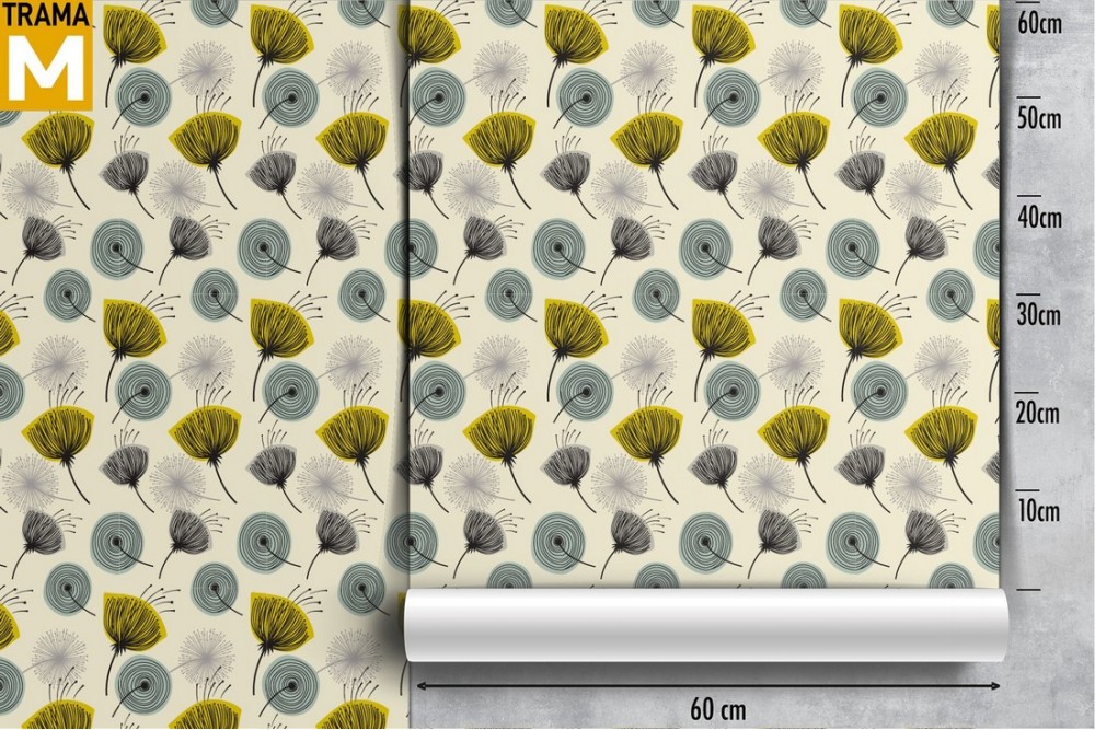 Carta da Parati fiori stilizzati gialli azzurro vintage.