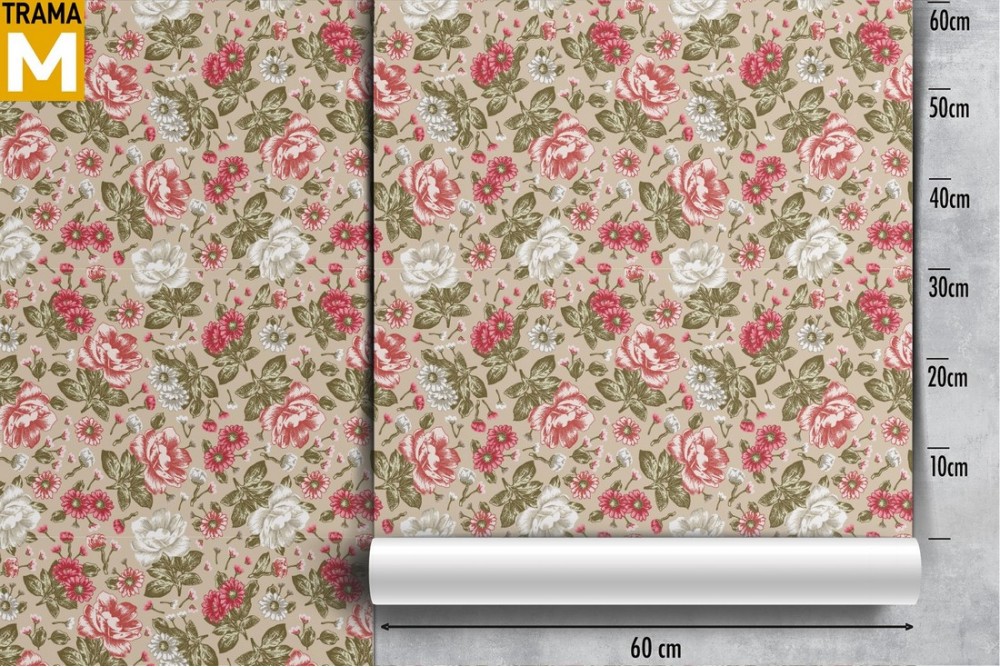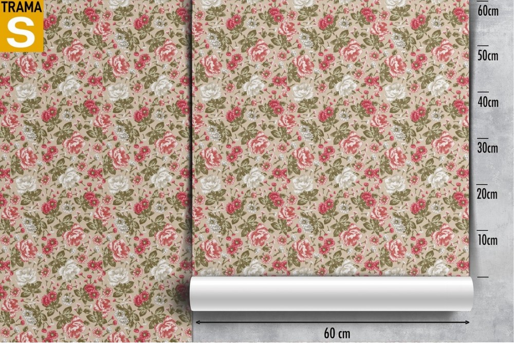 Carta da Parati fiori rossi rosa e bianchi vintage.