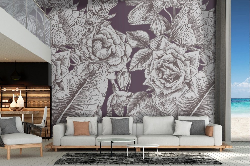 Carta da Parati Design e Stili Flora e Fauna Fiori Natura Vintage
