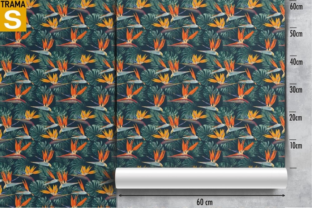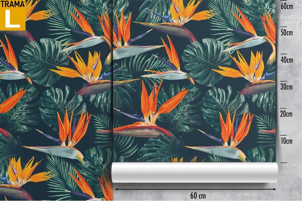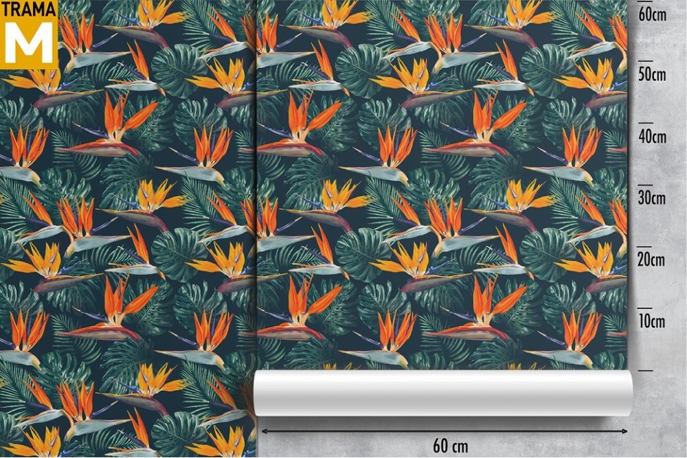 Carta da Parati fiori e foglie tropicali natura.