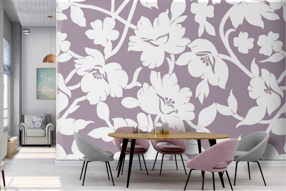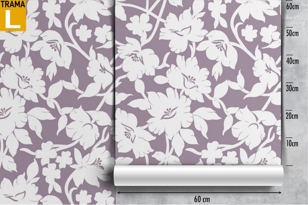 Carta da Parati fiori bianchi natura stilizzata moderna.