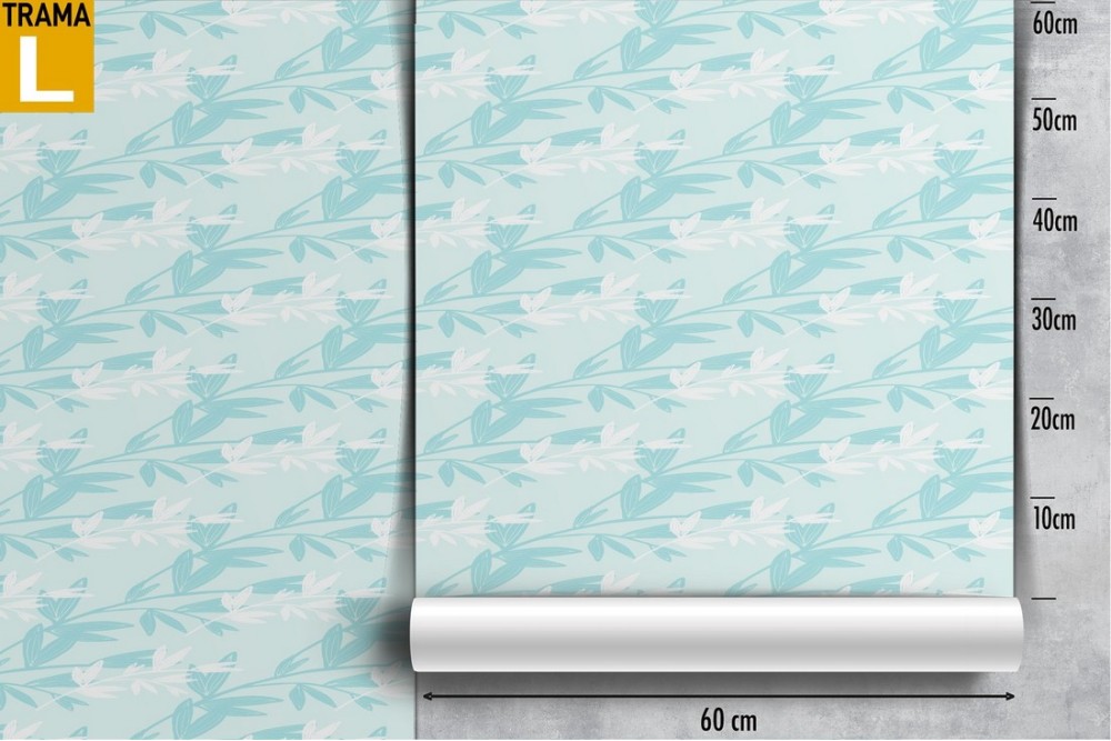 Carta da Parati foglie e fiori stilizzati vintage azzurro.