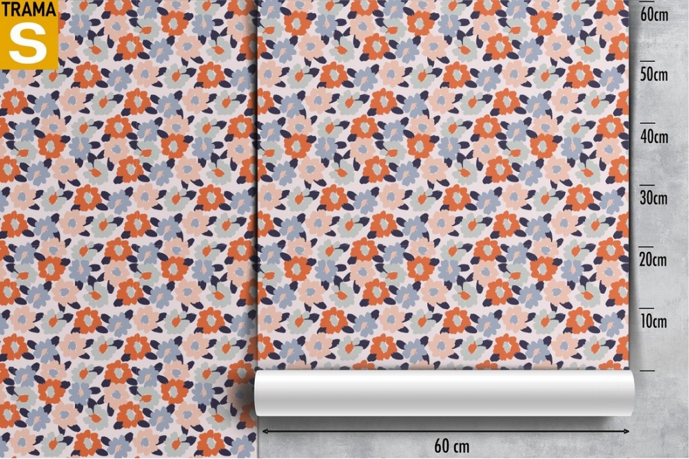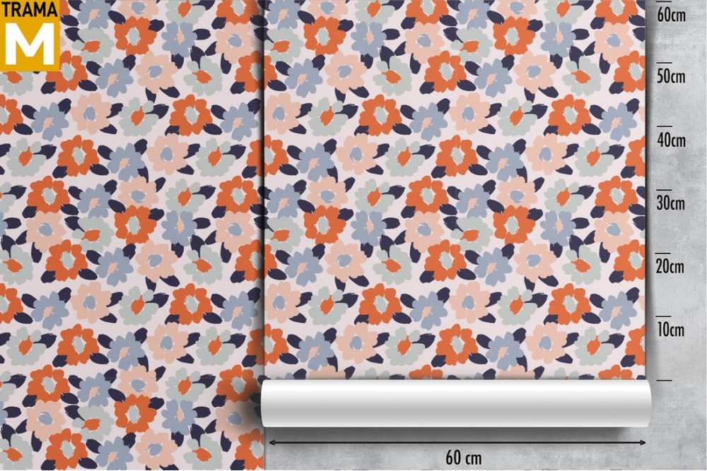 Carta da Parati fiori natura astratta moderna rosa azzurro.
