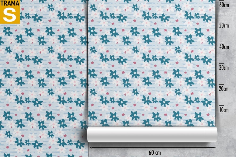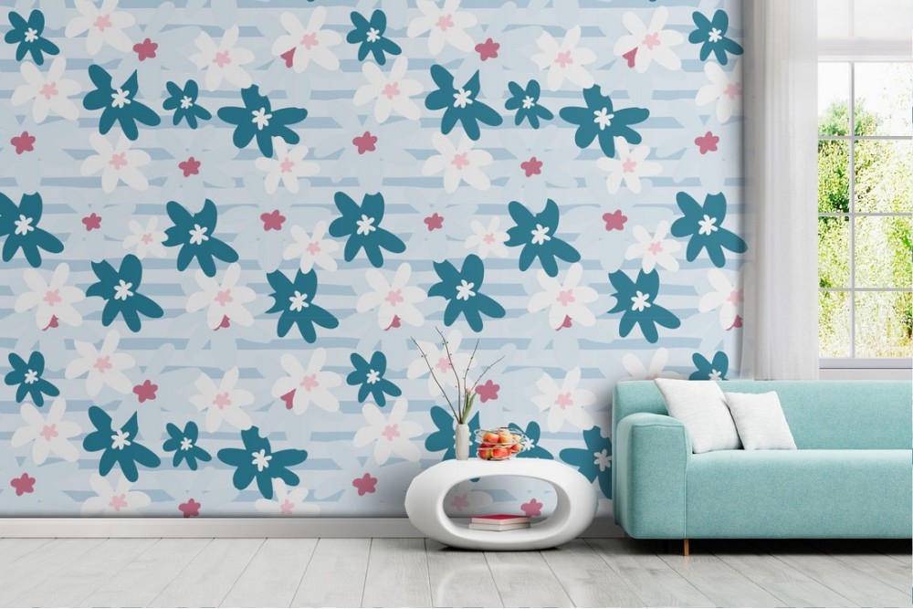 Carta da Parati fiori stilizzati bianco e blu natura pattern.