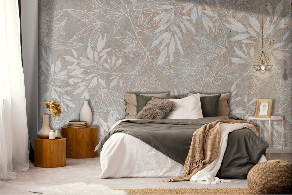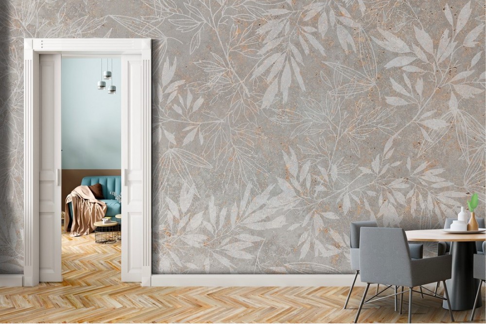 Carta da Parati foglie stilizzate su marmo natura vintage