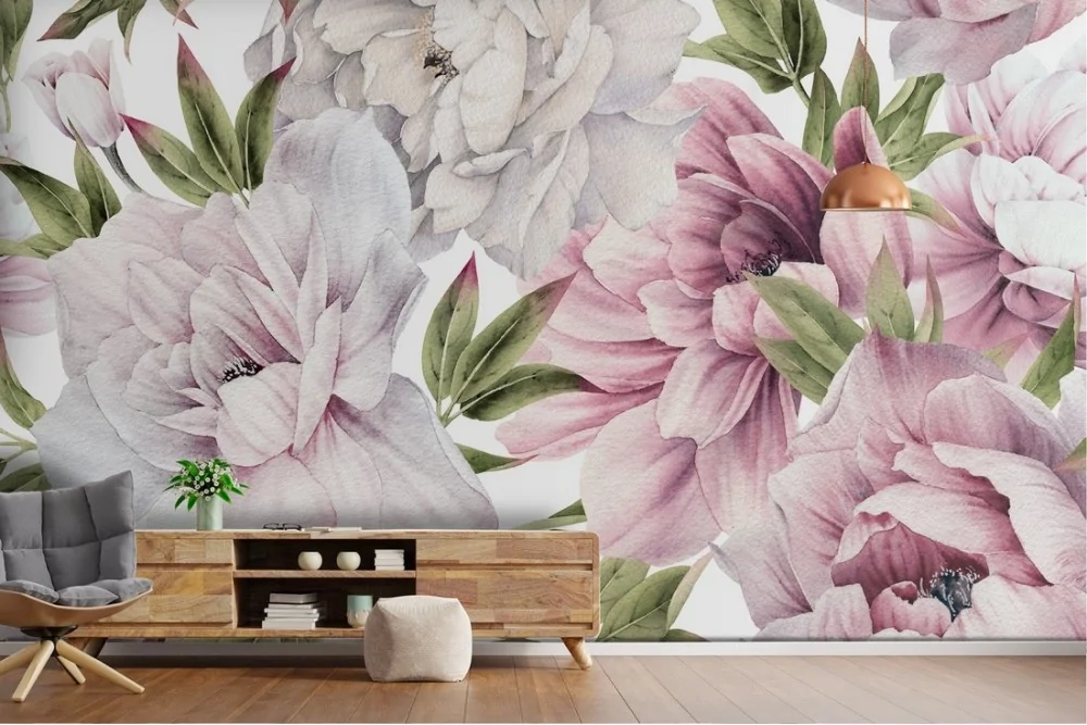 Carta da Parati fiori vintage composizione illustrazione natura