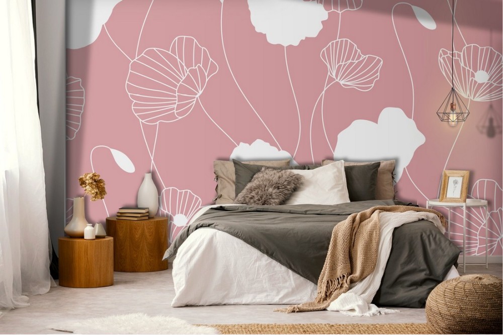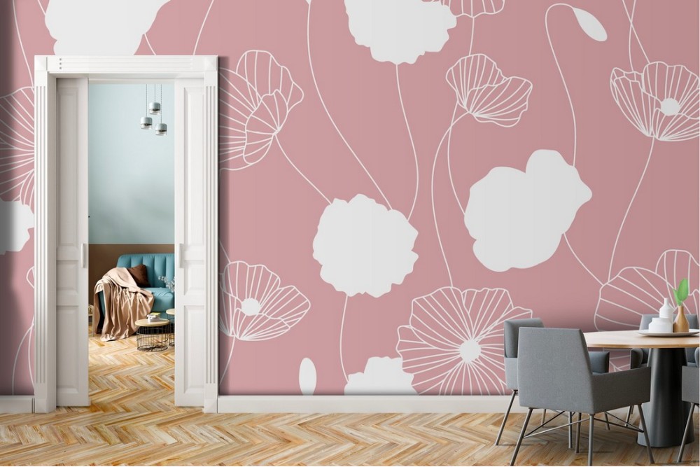 Carta da Parati fiori stilizzati rosa natura design moderno