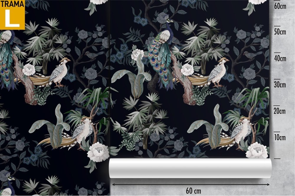Carta da Parati flora e fauna fiori uccelli pattern.