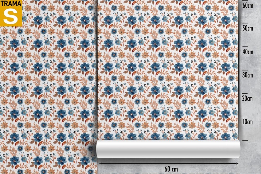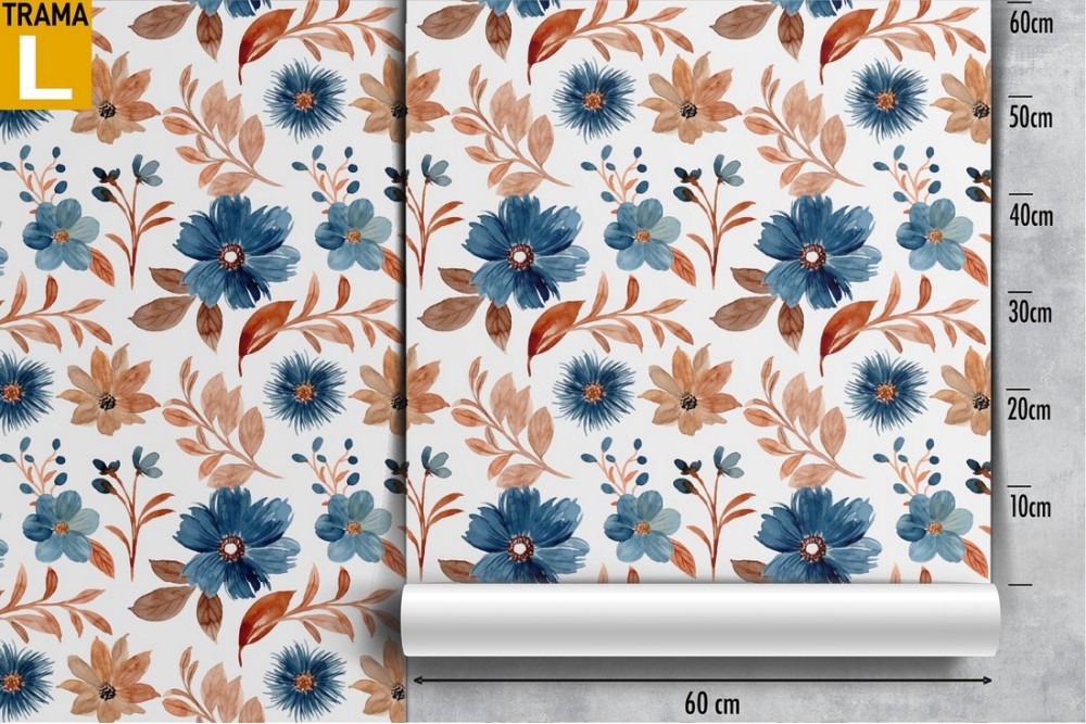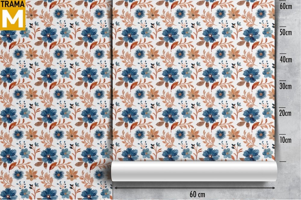 Carta da Parati fiori vintage e foglie autunno blu marrone.