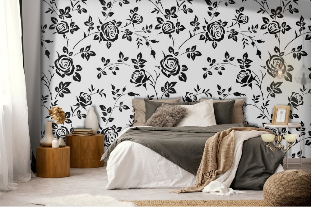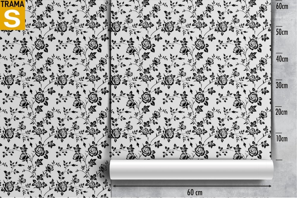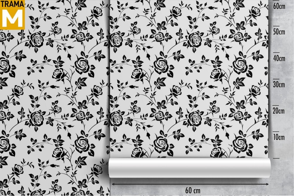 Carta da Parati rose stilizzate nero natura pattern.
