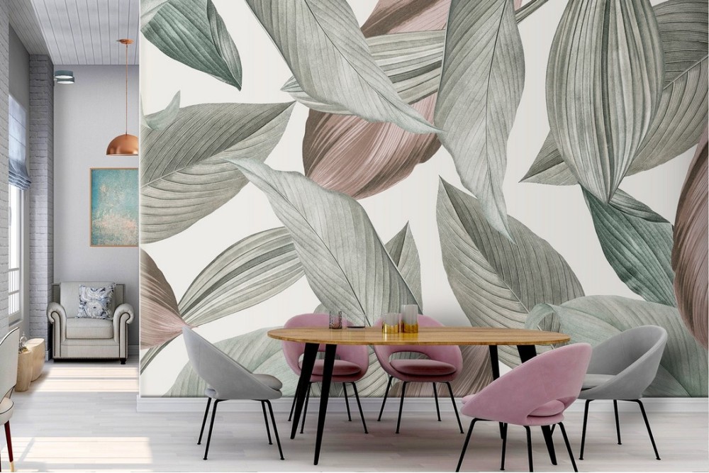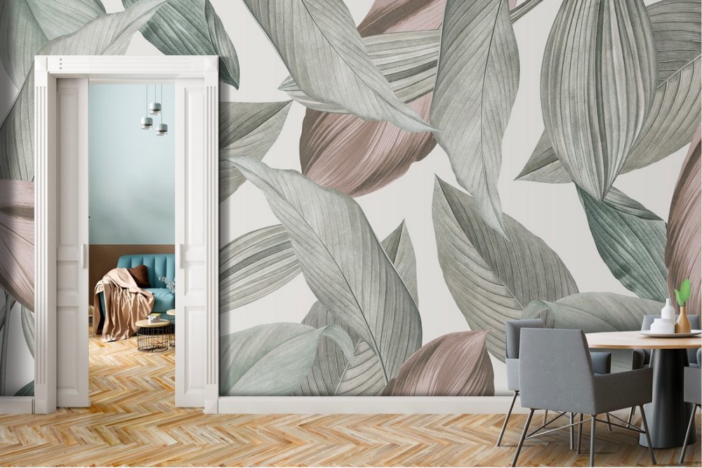 Carta da Parati foglie natura design vintage.639