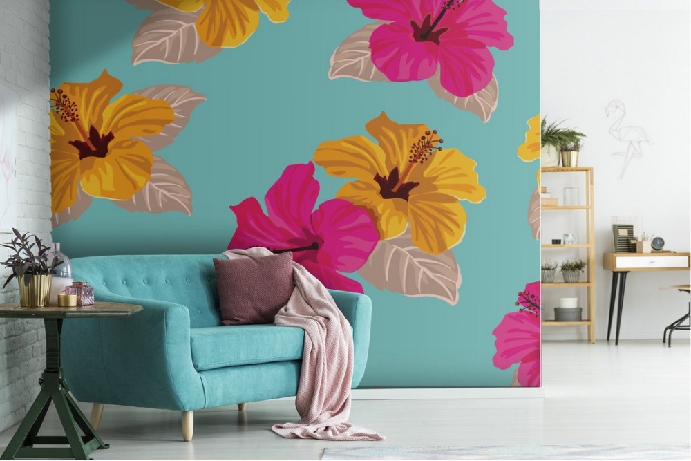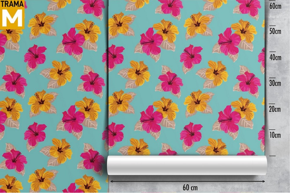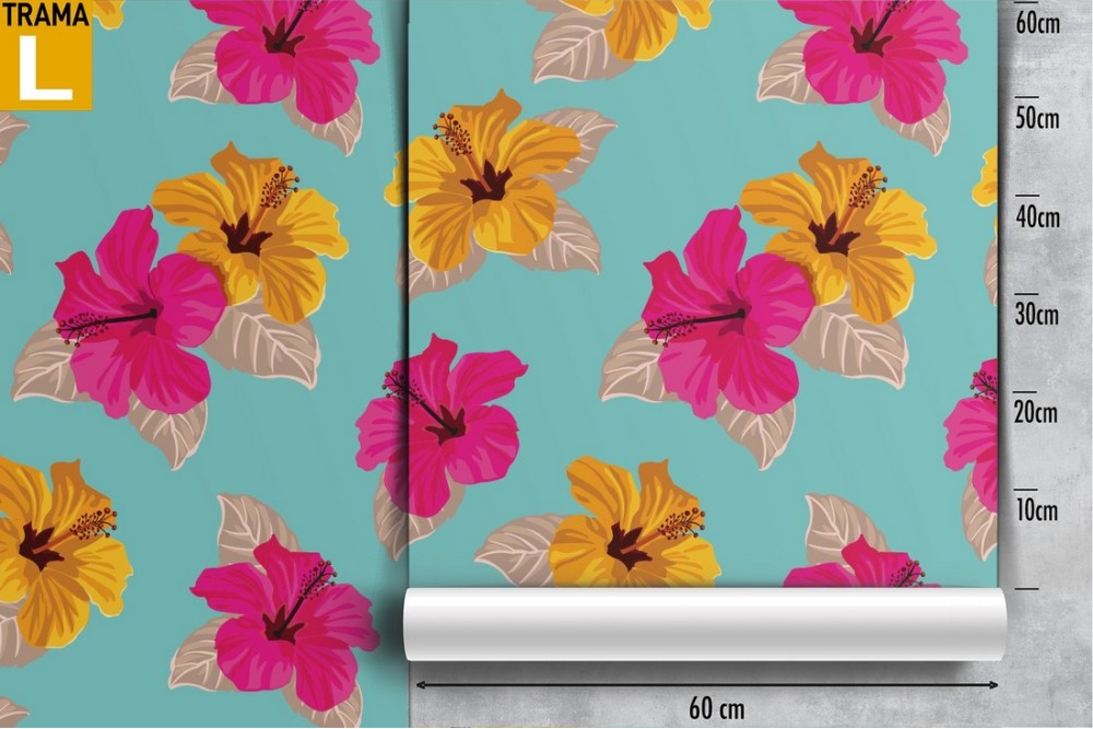 Carta da Parati fiori rosa e arancione pattern moderno.253