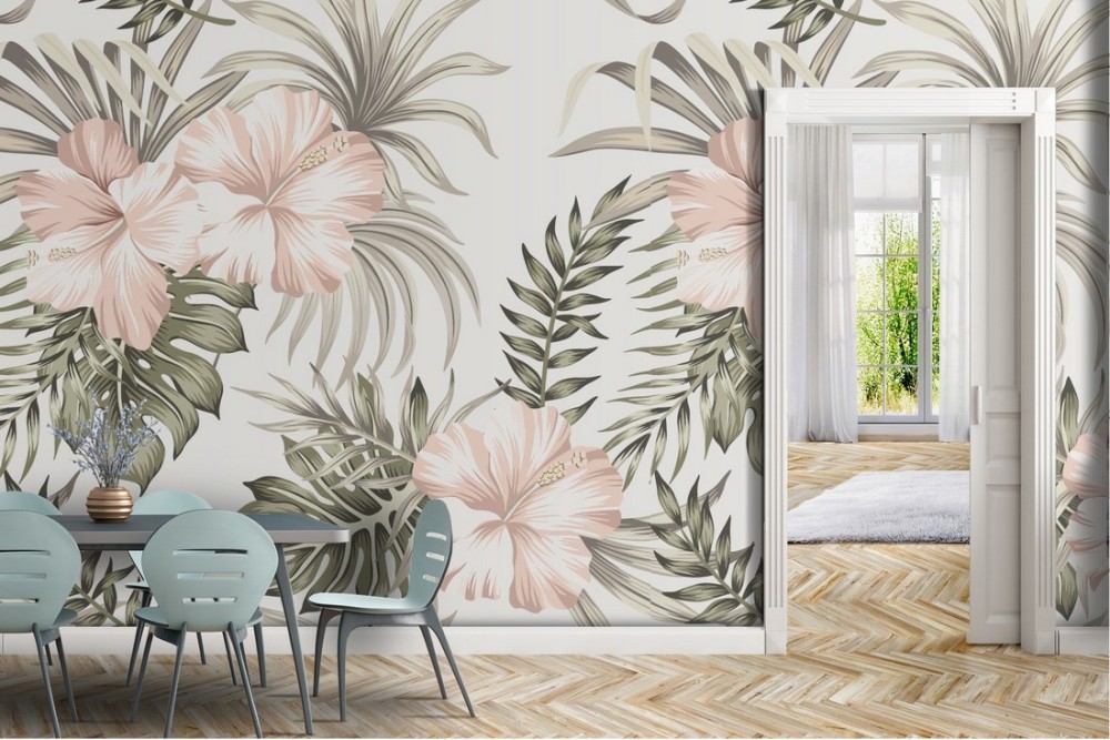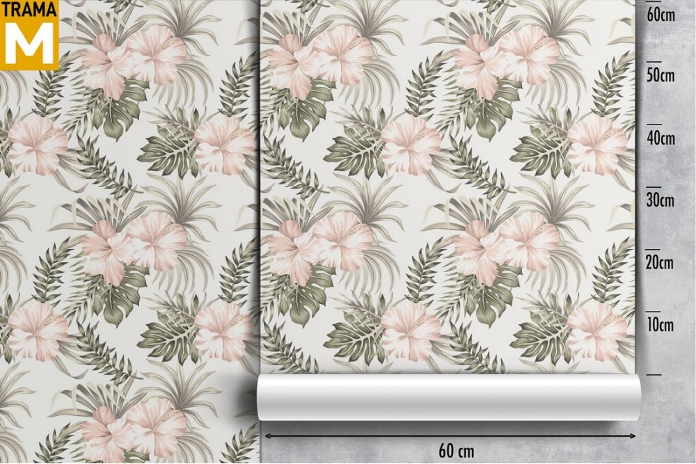 Carta da Parati fiori rosa e foglie tropicali natura pattern.257